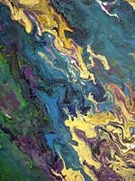 Flowers Reflected. Acrylic on canvas. Abstract, colorful, blue, green, yellow